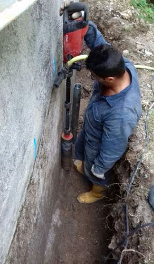 Inoltre la presenza della scarpata vicinissima al manufatto e la delicatezza dell’opera da consolidare, hanno portato Progettisti e Committenza a scegliere un sistema che limitasse al massimo gli scavi (visto anche il pochissimo spazio per gestire il materiale di risulta) e non comportasse dannose vibrazioni oltre alla possibilità di operare con macchine e attrezzature trasportabili manualmente o al massimo con l’impiego di un piccolo fuoristrada.